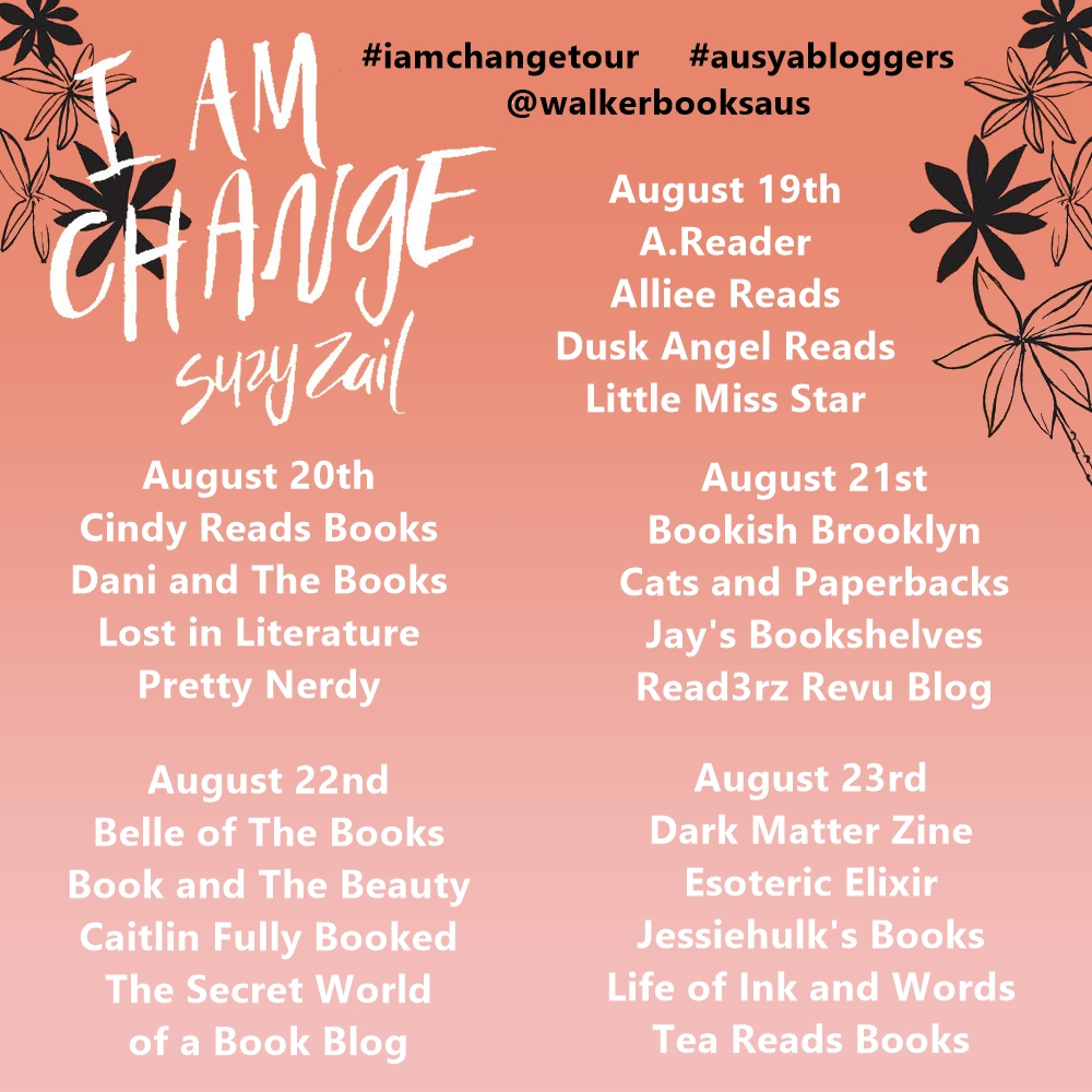 I just want to thank Suzy Zail, AUSYABLOGGERS as well as Walker Books for enabling me to be on the blog tour for I Am Change.