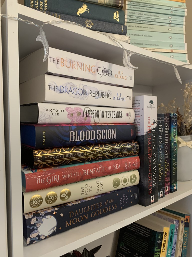 To kick off, we’re going to look at all the books in the fantasy or sci-fi category that I own that I have not read yet. I think out of all of my books, these are the ones I am most excited for. I think I’m going to organise this post by audience (YA or Adult), and then by author surname…I think. Does that sound good?